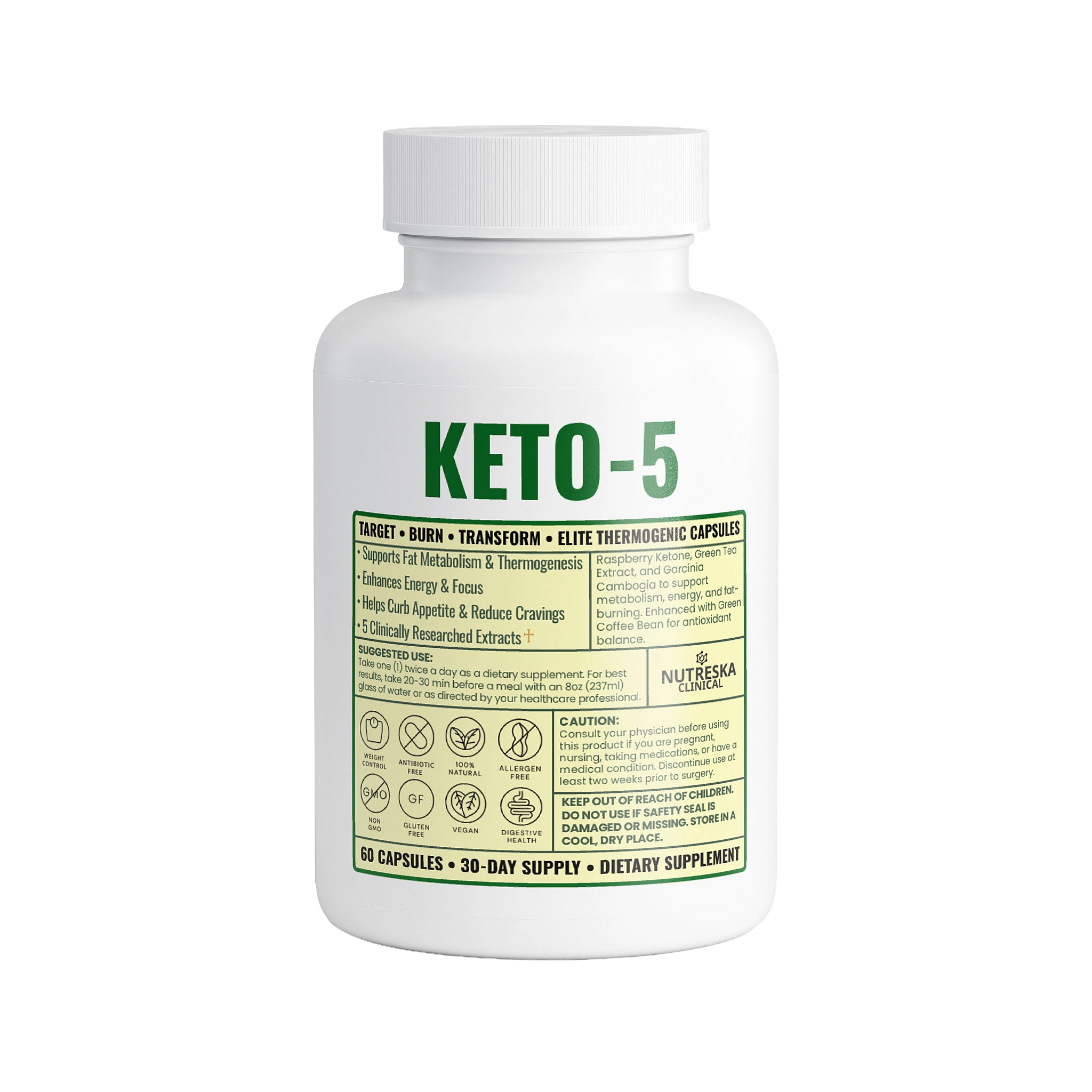 Nutreska places safety and health first. Keto-5 is made with clinically studied ingredients at responsible dosages, manufactured in GMP-certified facilities. Most people can use Keto-5 daily without concern, but we recommend speaking with a healthcare professional before starting any supplement—especially if you are pregnant, nursing, or have pre-existing health conditions.