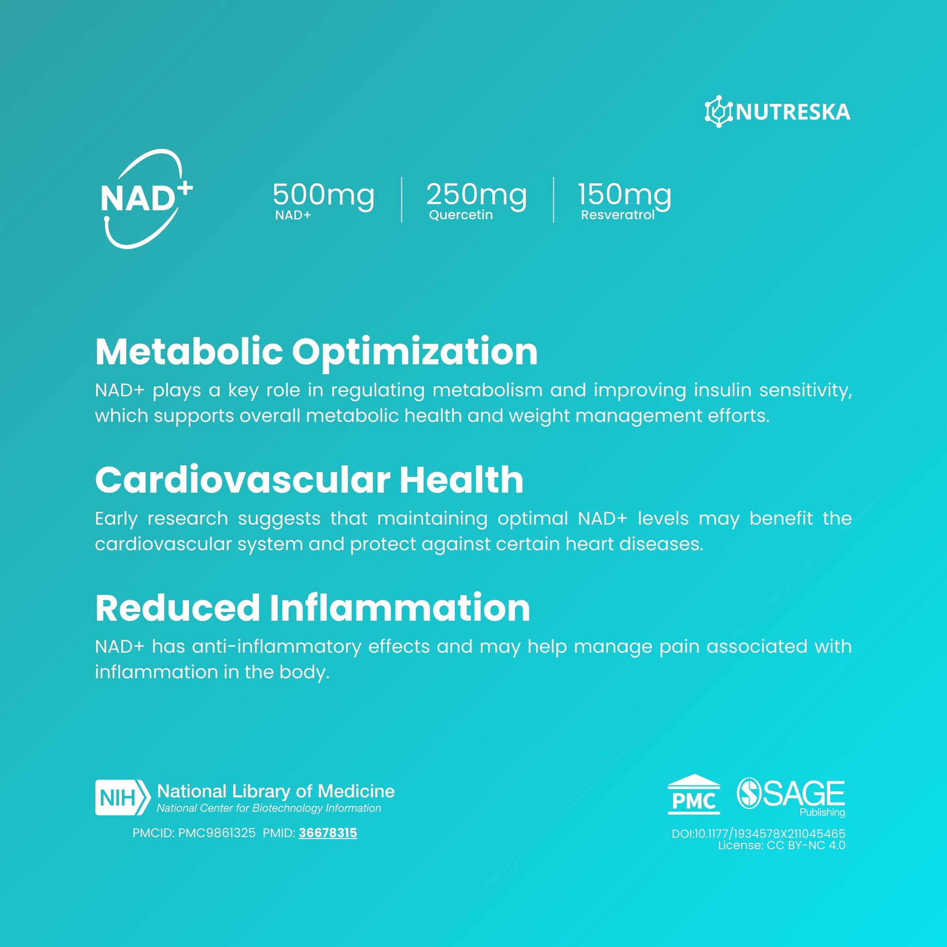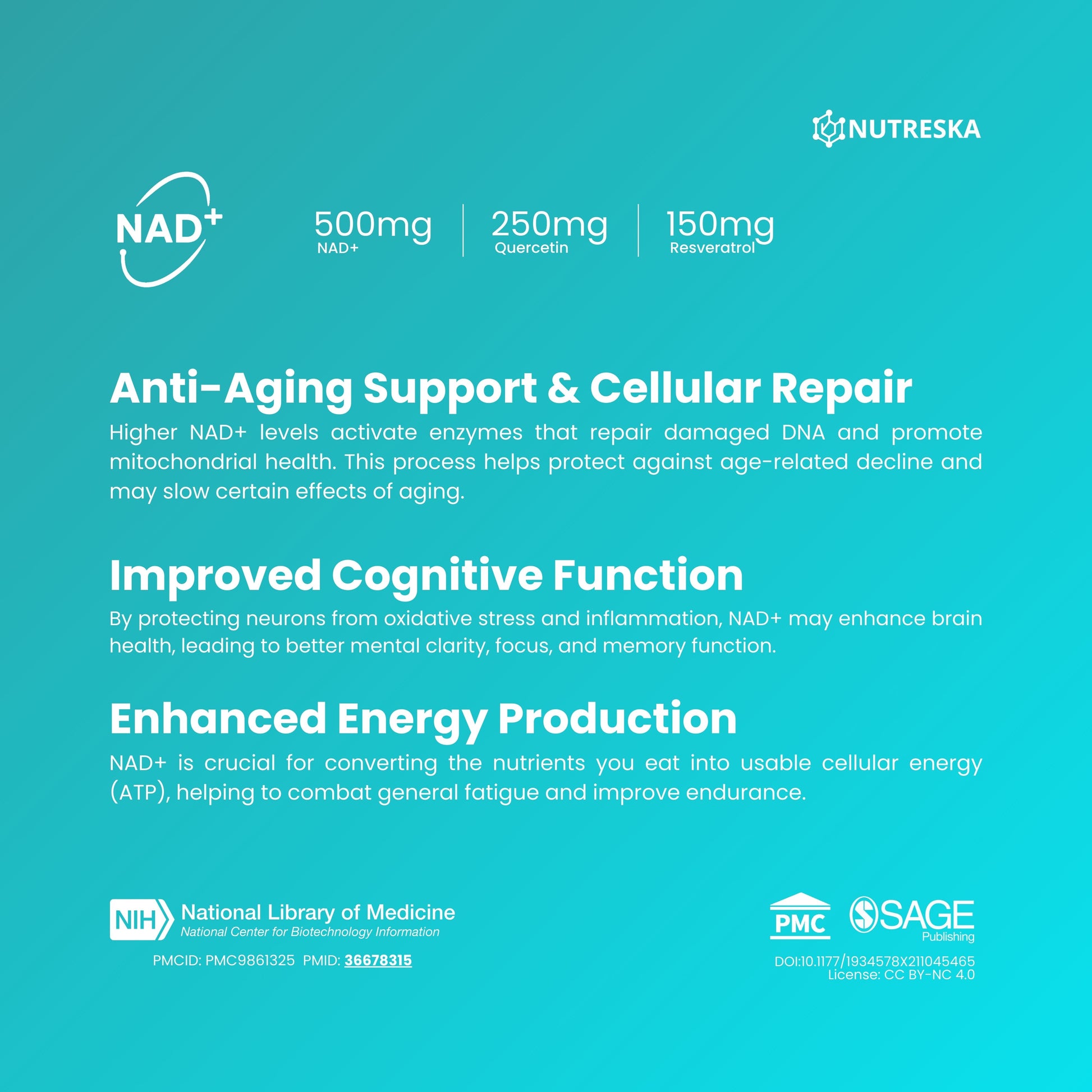 Nicotinamide Adenine Dinucleotide supports cellular energy production and DNA repair mechanisms.