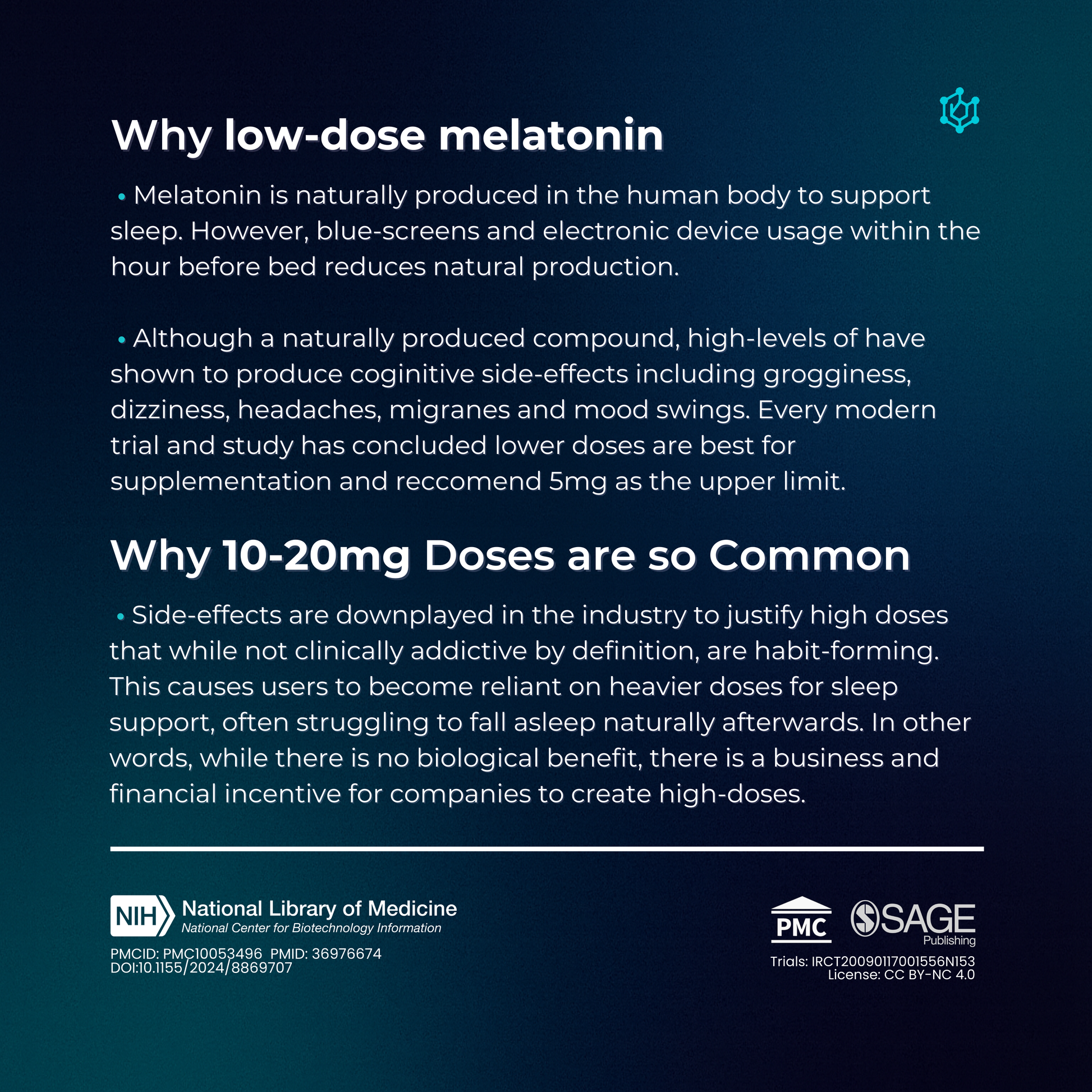 Alternatively for a lower dose option matching what the human body is naturally capable of producing, take 1 capsule daily (equivalent to 1mg melatonin).